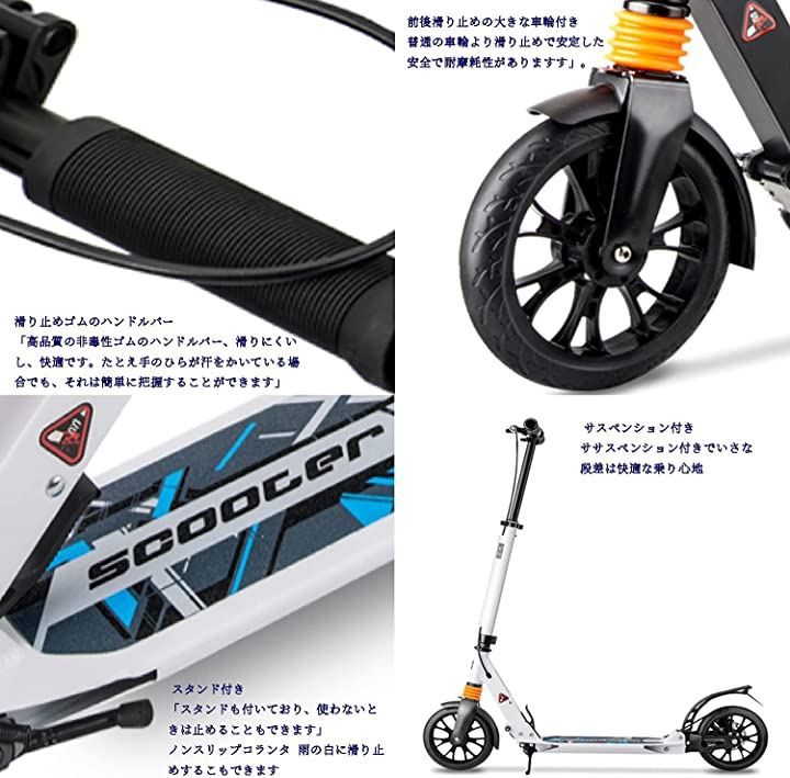 KIKII キックボード キックスクーター大人 子供用 3段階調整 折り畳み式 フット ハンドブレーキ 黒色