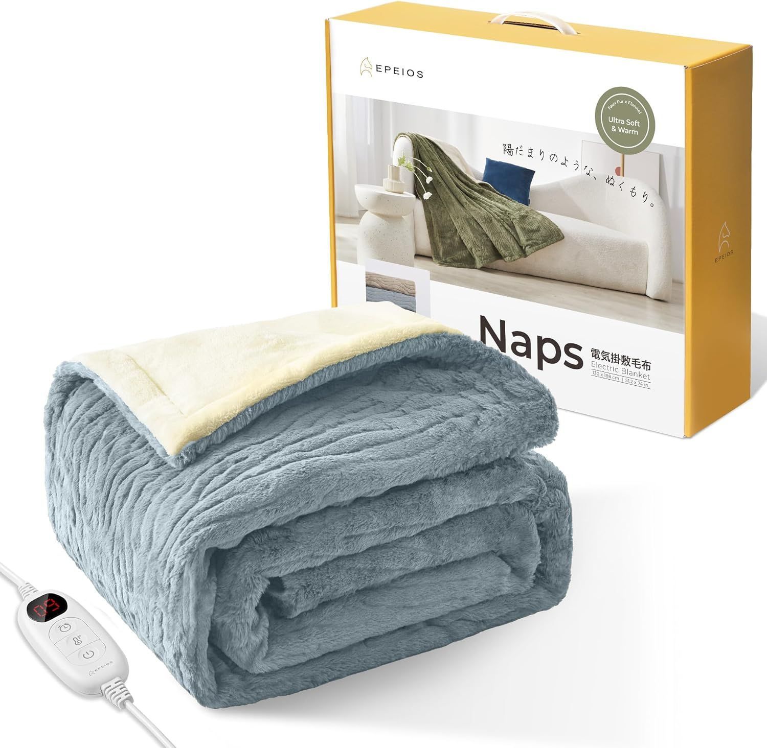 【心地良い質感・優れた保温性】 Epeios Naps電気毛布は、表地と裏地になめらかでやわらかな肌触りのぬいぐるみ生地で、高級感がある触り心地、体の上から掛けて暖かくに包まれます。空気を溜め込み熱を逃さない長毛素材のため、保温性にも優れています。