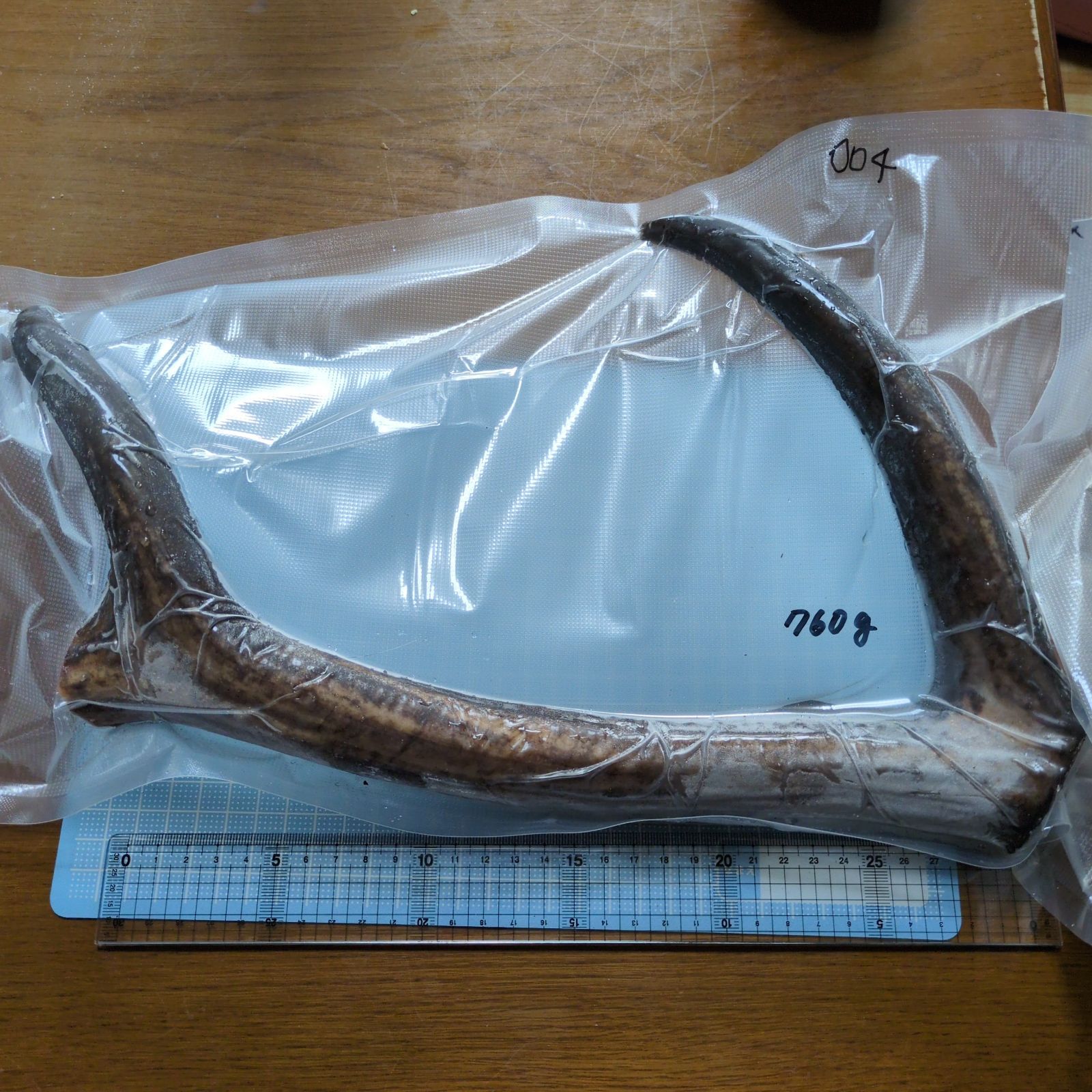 捕獲後すぐに切断し、真空パックにして冷凍しました。