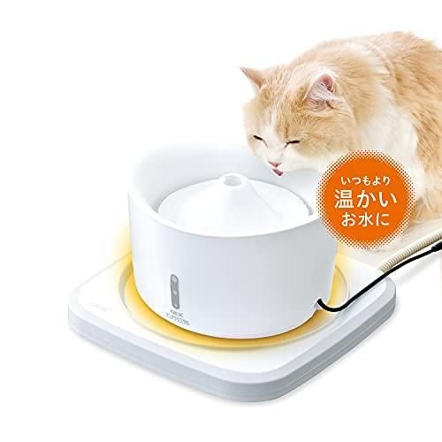 商品紹介 フィルター式給水器ピュアクリスタルの下に設置するだけで、お水を温める。冷たいお水が苦手なワンちゃんネコちゃんにいつもより温かいお水を。 かじり防止カバー付きコード(フレキシブルチューブ)。 省エネ設計 電気代:1時間約0.4円(1kWh=27円の場合) 給水器の下に設置するだけ フィルター式給水器 ピュアクリスタルの下に敷くだけで、お水を温めます。 過熱を防ぐWの安全設計 【サーマルプロテクター】間違った使用方法等により本体が異常高温になった場合、サーマルプロテクターが働き通電を制御します。(本体の温度が下がれば通常通り動作します。) 【温度ヒューズ】サーマルプロテクターが故障した時も、異常高温時は温度ヒューズで通電を遮断します。(温度ヒューズが働くと再使用できません。) <適合機種>底面が直径22cm以下のフィルター式給水器ピュアクリスタルシリーズ <ご使用方法>●平らで安定した場所に設置してください。タオルやペットシーツの上に置かないでください。●本製品の上にこぼれた水はすぐに拭き取ってください。●本製品使用時は、通常よりピュアクリスタルの水の減りが早くなるため、こまめに水位の確認・給水を行ってください。また、通常より水がいたみやすいので、毎日水の交換、ピュアクリスタル本体・フィルターの洗浄を行ってください。 本製品はフィルター式給水器「ピュアクリスタル」専用です。他の目的には使用しないでください。また、ピュアクリスタル以外のものを上に置かないでください。 噛みぐせの強いペットには使用しないでください。 <製品サイズ>約幅27.0×奥行き27.0×高さ3.6cm(コード部除く) <電源コード長>約1.5m <通電遮断機能>サーマルプロテクター、温度ヒューズ <定格消費電力>15W 原材料・成分 本体:PC、脚ゴム:シリコン 使用方法 ●平らで安定した場所に設置してください。タオルやペットシーツの上に置かないでください。●本製品の上にこぼれた水はすぐに拭き取ってください。●本製品使用時は、通常よりピュアクリスタルの水の減りが早くなるため、こまめに水位の確認・給水を行ってください。また、通常より水がいたみやすいので、毎日水の交換、ピュアクリスタル本体・フィルターの洗浄を行ってください。