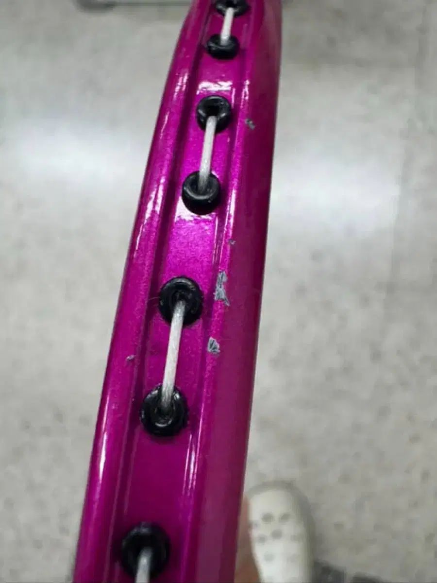 これはヨネックスデュオラ 9 バドミントンラケットです。白いグリップで丁寧に包まれています。濃いピンク色がとてもきれいです。ご不明な点がなければ、すぐに安心してお支払いいただけます!