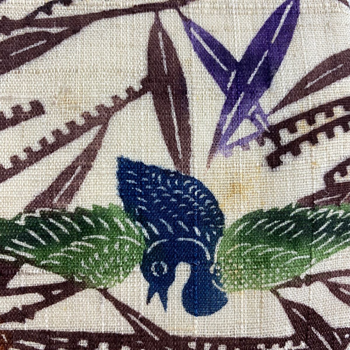 名古屋帯 鳥 葉 紬地 薄茶色 正絹