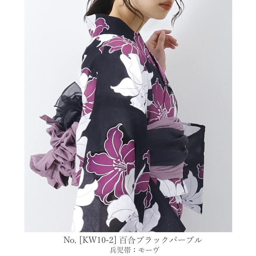 F 糸目牡丹ブラック 簡単 1人で着れる綿 セパレート浴衣2点セット 二部式浴衣 帯 セパレート浴衣 浴衣セット 夏着物 綿 レディース 二部式 セパレート イイネ