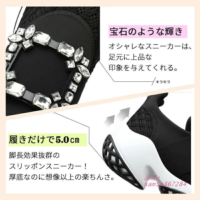 ビジュー メッシュ スニーカー きらきら レディーススニーカー 疲れにくい コンフォート スリッポン ストレッチ 厚底スニーカー 厚底 am 5 a 367284