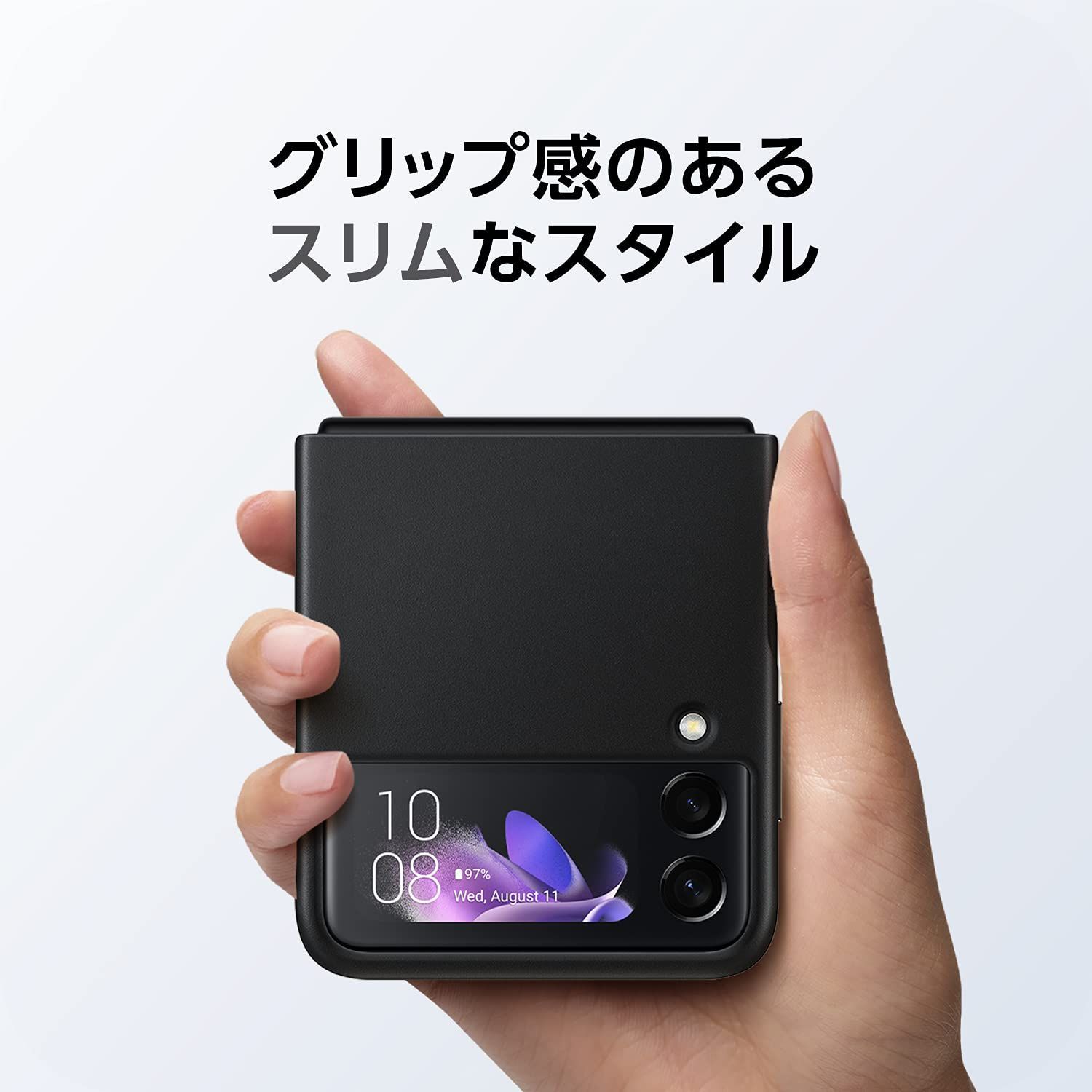 上質な革を使用した高級感ある質感と純正ケースならではのフィット感とソフトなグリップ感を実現