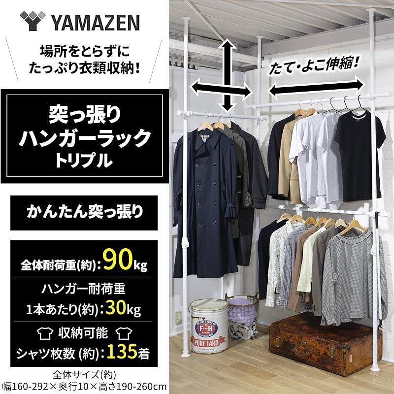 山善 YAMAZEN 突っ張り ラック ポールハンガー ハンガーラック 全体耐荷重90 kg シャツ最大135着 ひっかけ棒付き ワンタッチ突っ張り 実用新案取得済 縦横伸縮 幅160-292 cm 高さ190-260 衣類 収納 組立品 マット 1