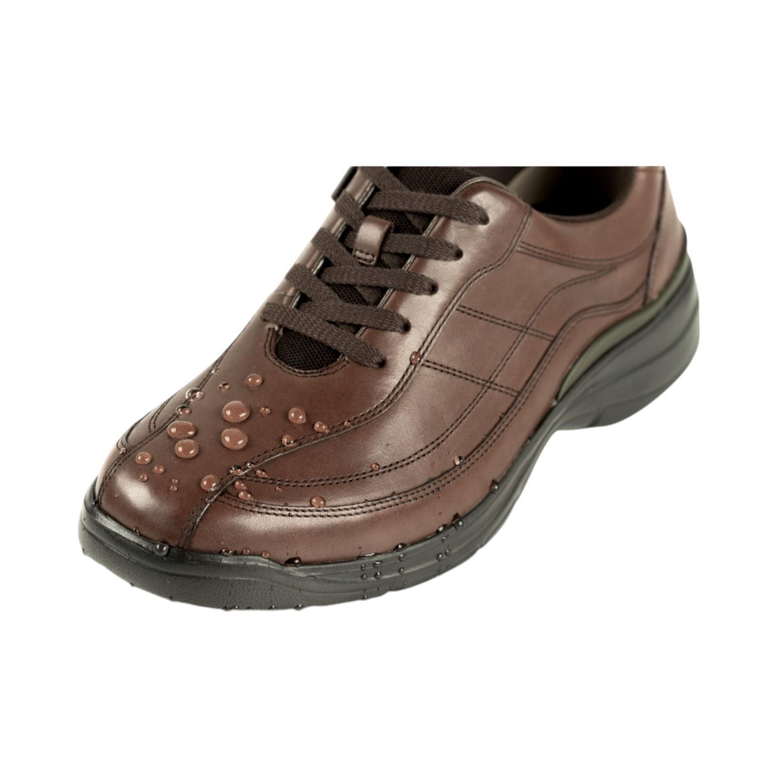 テーマは旅する達人! 長く歩いても疲れにくい! らくらくウォーキングシューズです。撥水加工を施した天然皮革の柔らかいアッパーには、インサイドファスナーが付いているため、脱ぎ履きが簡単です。幅広4Eワイドラストです。また、通気孔システムにより靴内のムレを緩和します。抗菌防臭加工もされています。デザインはカジュアルでもビジネスでも対応できるベーシックなデザインです。