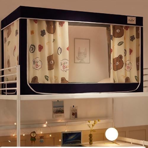 Sariny蚊帳 学生寮 室内カーテン シングルベッドプライバシーテント 上段と下段蚊帳 ベッドテント 取り付けが便利 遮光 通気性 防虫 防蚊 防塵 男女兼用 上段下段用 T 上段 90 190 110 cm 3ドア