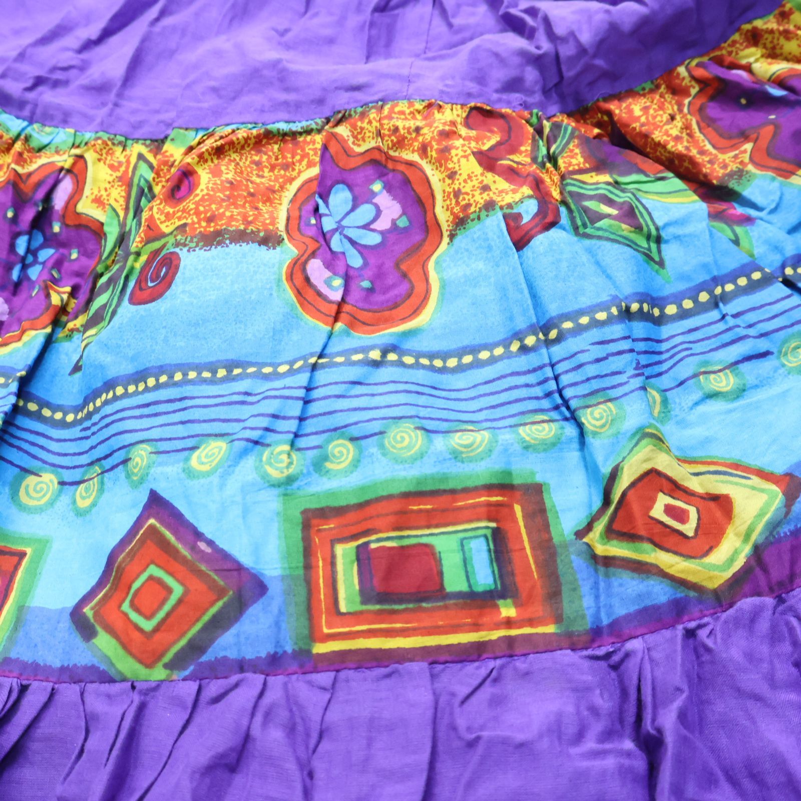 インド製 ベリーダンス用衣装 パープル×水色×オレンジ MYST ボリューム ジプシースカート 紫 フリル 異国情緒 鮮やか 柄 ロング 大きく広がる裾 華やか
