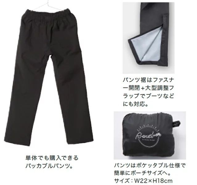 ・パンツはポケッタブル仕様で簡単にポーチサイズへ。