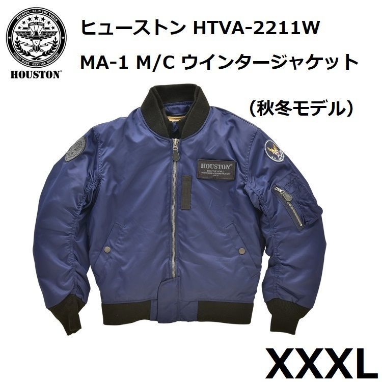 HOUSTON ヒューストン HTVA-2211 W MA-1 M C ウインタージャケット ネイビー XXXLサイズ 刺繡入り 4点プロテクター 中綿 防水透湿フィルム内蔵 脱着式のネックウォーマー