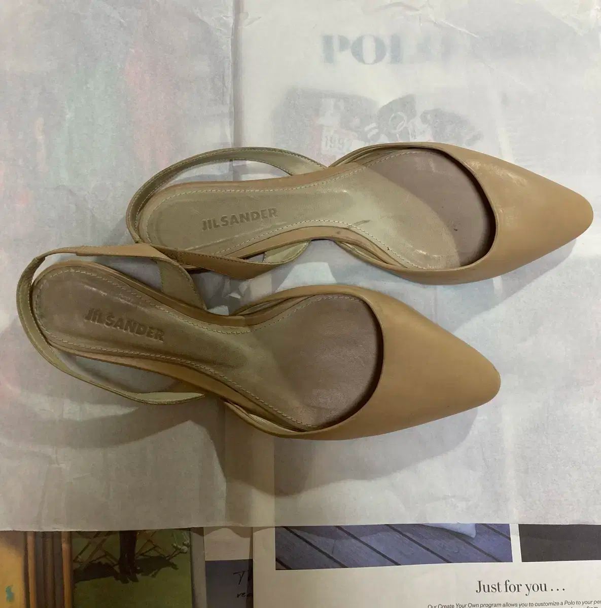 これらはジルサンダーのベージュのフラットシューズです。ほのかな光沢が高級感があり、サンダルのようなストラップがついていて個性的です。ジーンズ、スラックス、ドレスによく合います。ご不明な点がなければ、すぐに安心してお支払いいただけます!