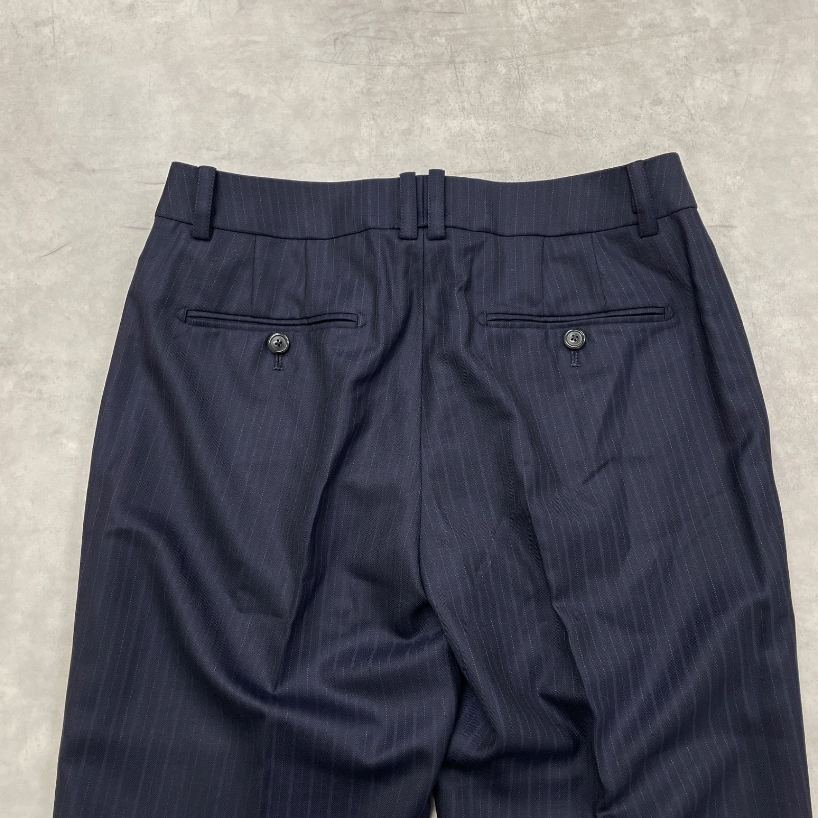 Paul Stuart ポールスチュアート ゼニア生地 パンツスーツ セットアップ ストライプ柄 テーラードジャケット ワイドパンツ ウール ネイビー レディース 8