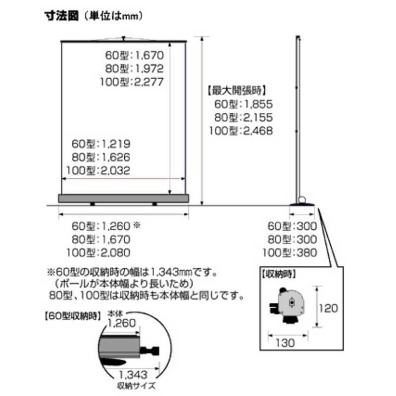 スクリーンサイズ(収納時):130×120×1670mm
