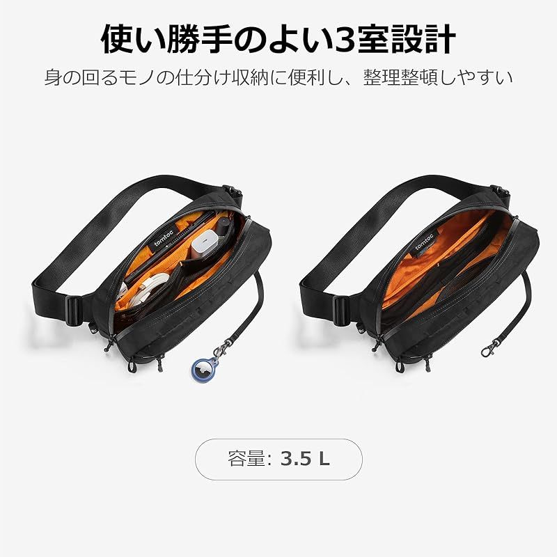 tomtoc 3.5 L X-Pac ボディバッグ 軽量 スリングバッグ ショルダーバッグ 斜めがけバッグ メンズ レディース 撥水 旅行 お出掛け サイクリング アウトドア 散歩 ブラック