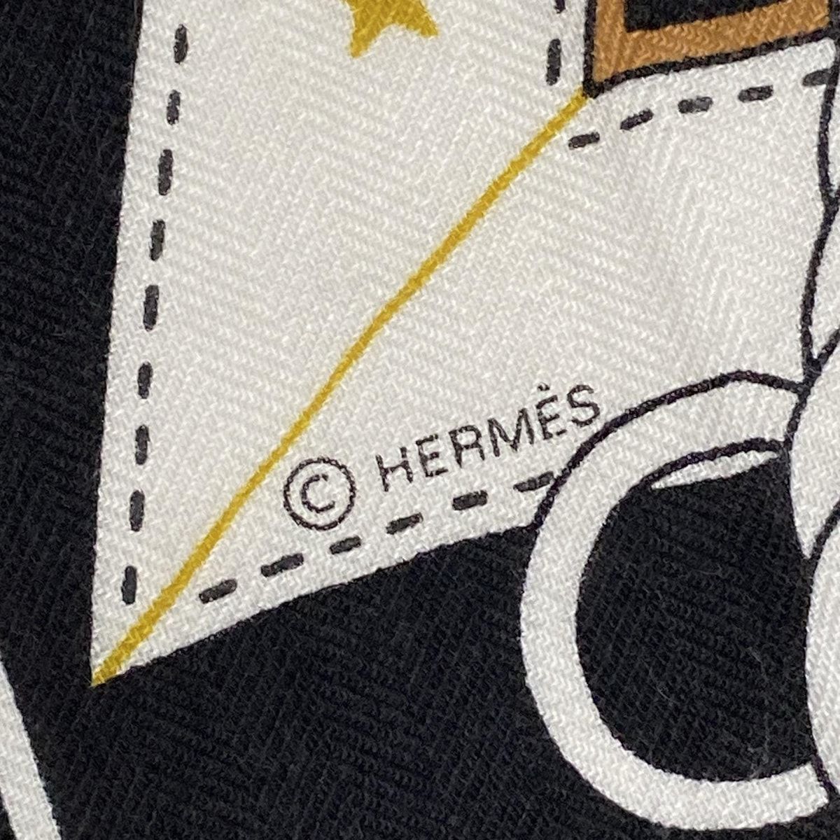 HERMES エルメス ストール ショール カレジェアン カレ140 黒×ブラウン×白 LA PROMENADE DU MATIN カシミヤ シルク