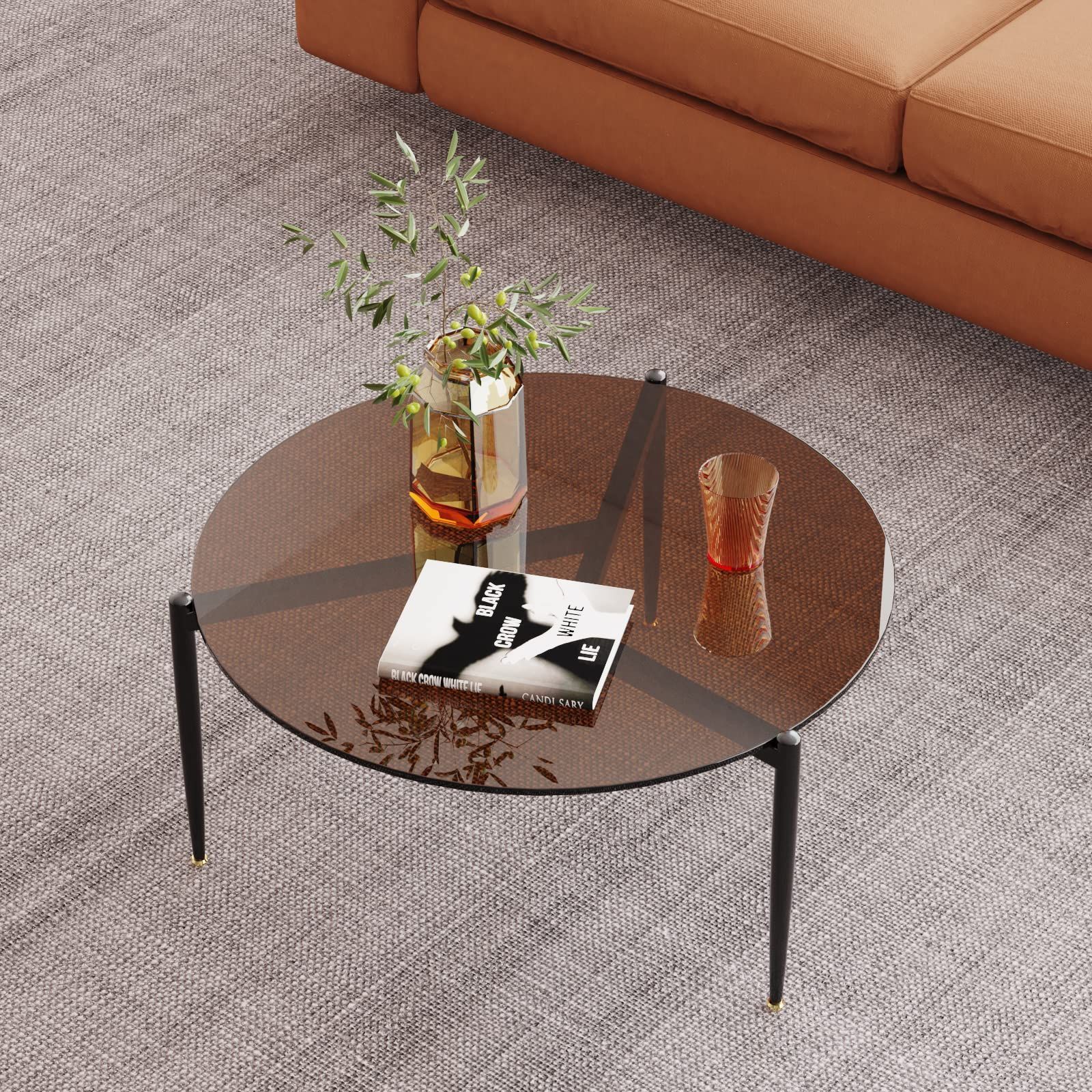 ガラス センターテーブル 丸 ガラステーブル 幅80㎝ リビングテーブル ローテーブル 円形 おしゃれ 丸テーブル ブラウン