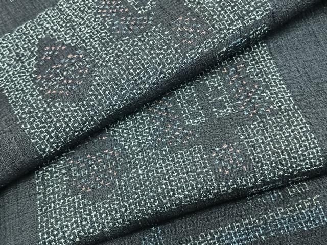 平和屋着物 結城紬 単衣 80亀甲 色紙文 正絹 fy