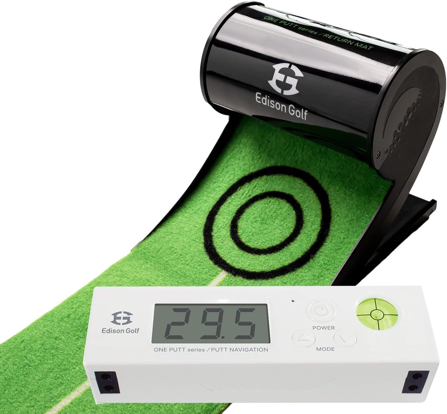 自宅のパター練習の決定版 エジソンゴルフ セット デジタル距離計 パターマット 室内で最長30 mのロングパット練習ができるワンパットセット