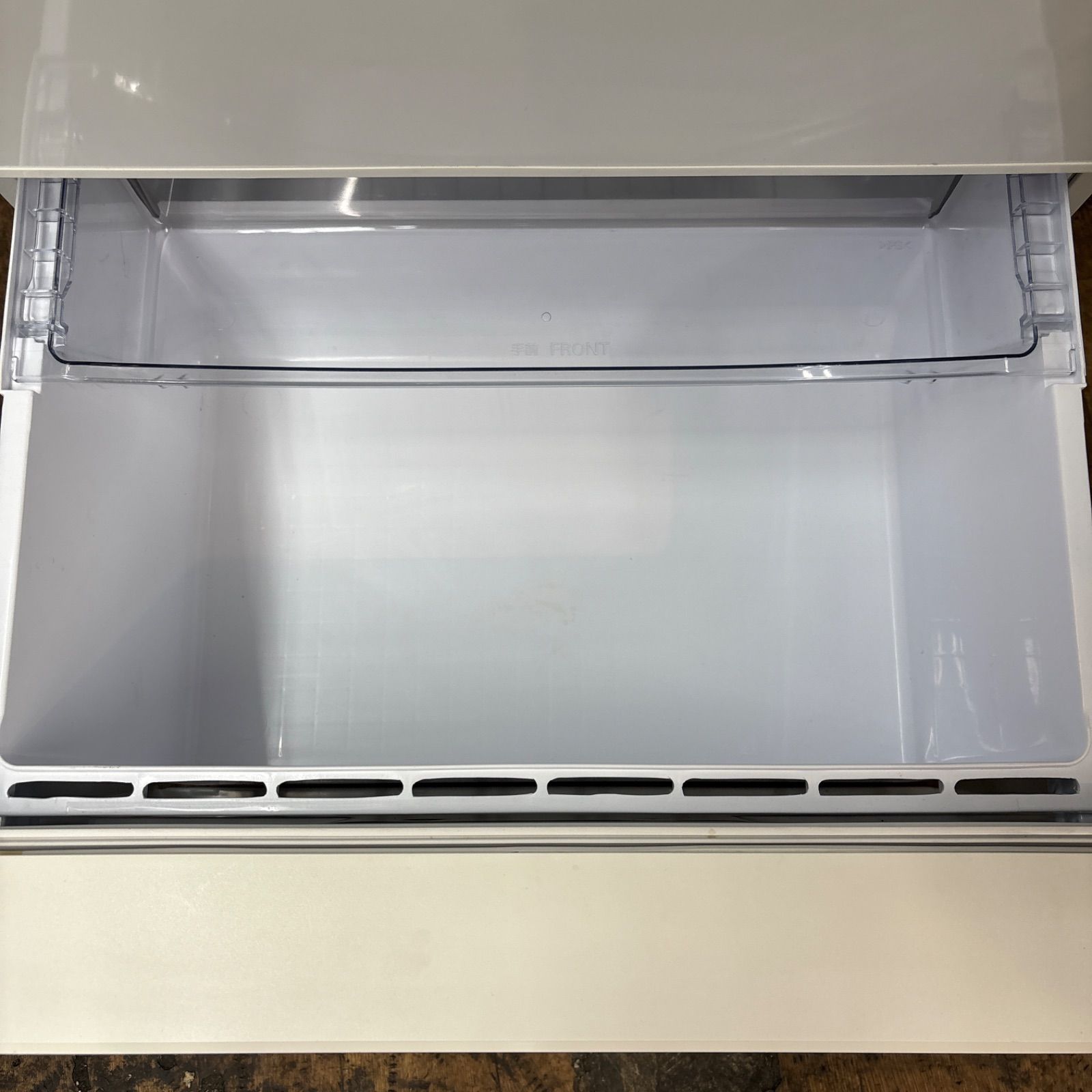 状態:2019年製のUSED品で、冷蔵室扉の両角と左側面に小キズ小凹みがるのと、冷凍室トレーが欠品です。