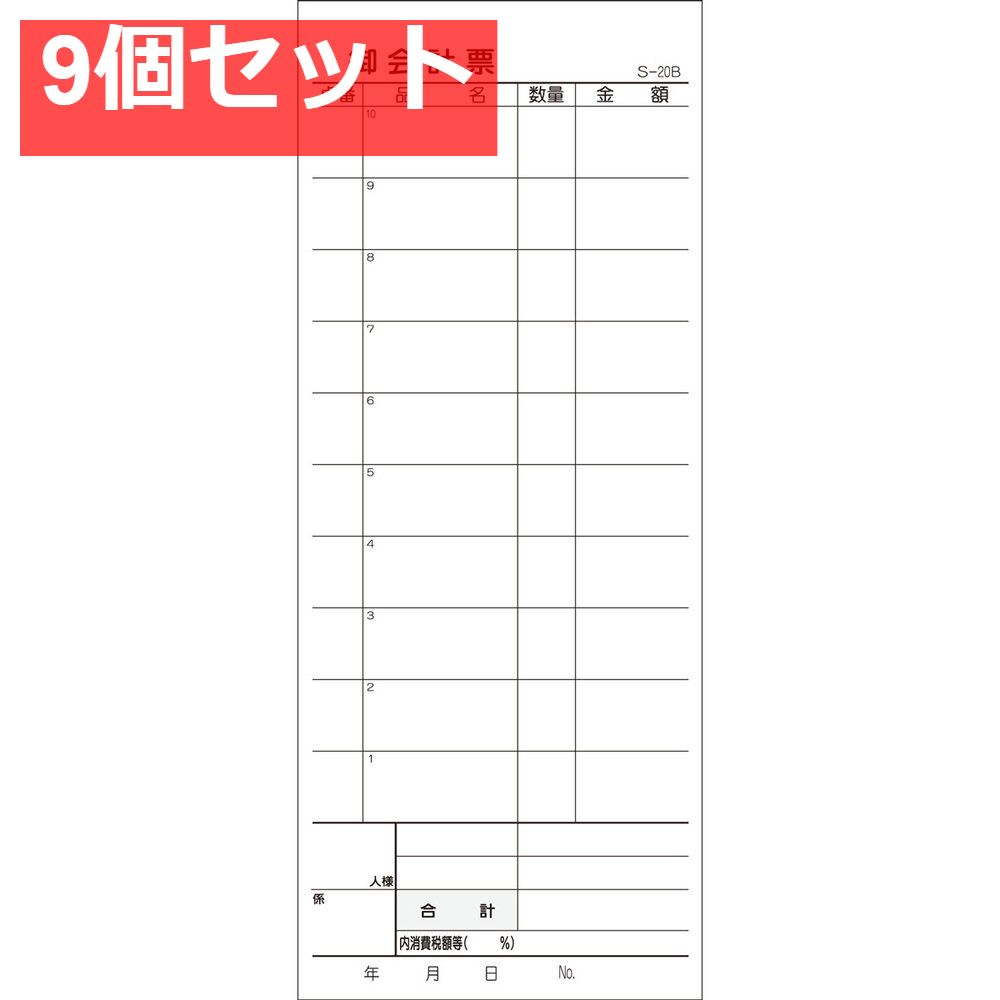 会計票 複写式 ミシン10本入 S-20 B 50組×10冊入 セット