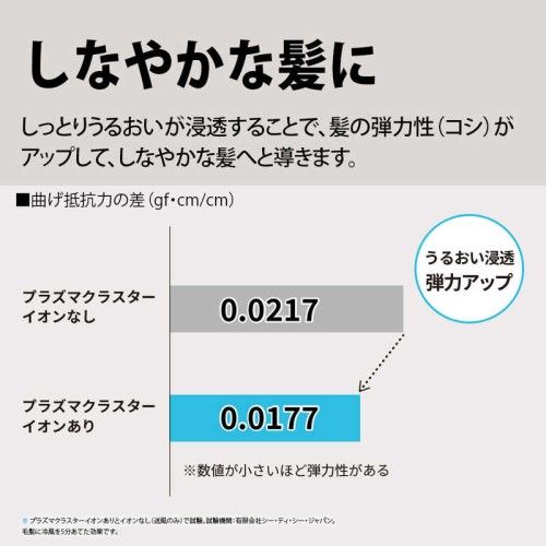 ●水分子に包まれたイオンが、髪表面をうるおいでコーティング。保湿効果を高め、キューティクルを引き締めて、ダメージに強いしなやかな髪へと導きます。イオン濃度もさらにアップしました。