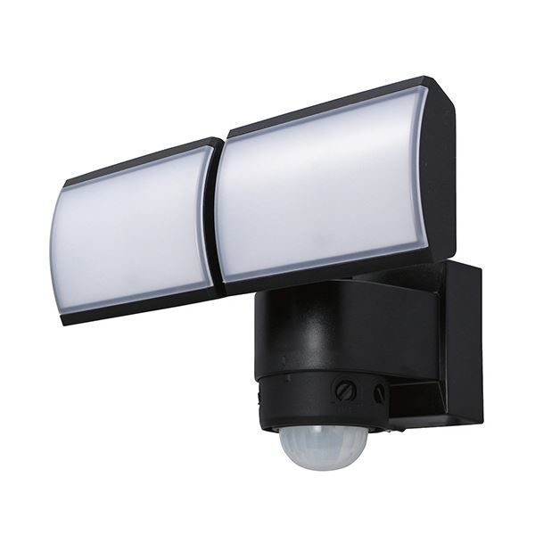 ●人や車の動きを検知して点灯する小型LEDセンサーライトの黒です。小型でも明るい2灯型(2000lm)。