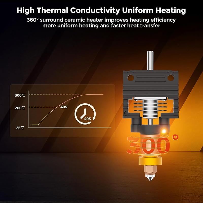 高温耐性: オールメタルヒートブレイク300℃までの高温耐性、ノズルは銅合金と硬化鋼で作られており、高フロー印刷をサポートしながら硬度を確保します。