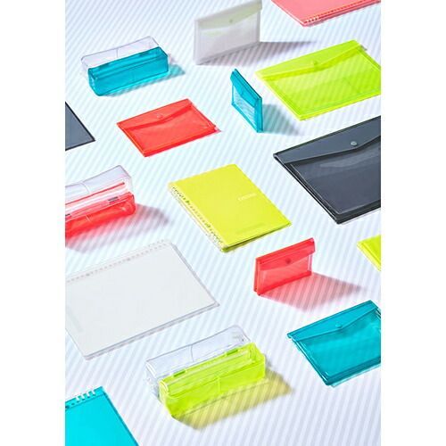 ポップなカラーリングとPVC素材の透け感が楽しめるステーショナリーシリーズ「チアーズ」。気分が上がるようなネオンカラーに加え、シーンを選はず使えるモノトーンカラーもラインアップ。便利な機能も備わって、あなたの毎日を応援します。カバンの中の小物をすっきりとまとめられる、軽量&スリムなバッグインバッグ!・サイズはカード、A6、A5、A4サイズの4展開。・マチが折りたたまれたスリムな本体&軽量設計でカバンの中でもかさばりません。・芯材が入っているため紙類もしっかり保護。・正面は透明ポケットになっているので中身が一目で分かります。・フタはプラホックでワンタッチで開閉できます。■バッグインバッグ・本体:PVC(軟質PVC0.3mm)・芯材:PP【検索ハッシュタグ】#キングジム#バッグインバッグ#収納#チアーズ#CHEERS!#ネオンカラー#蛍光色