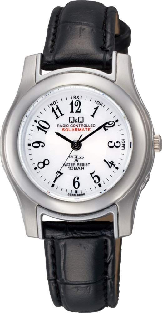 [キューアンドキュー] 腕時計 アナログ 電波 ソーラー 防水 革ベルト HJ03-304 レディース ブラック