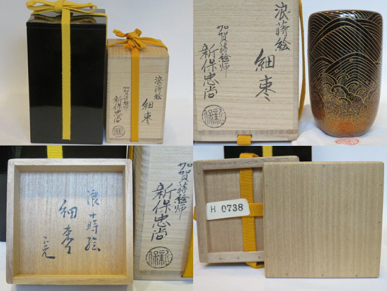 十月 特売品 塗師 新保忠尚作 浪蒔絵 黒細棗 堀内宗完 兼中斎 宗匠箱 花押 税込