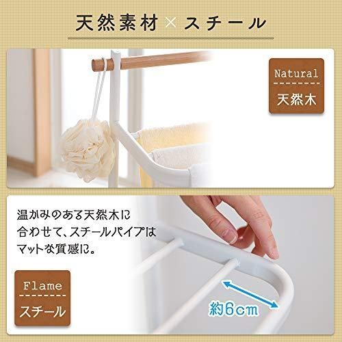 お部屋に馴染む、シンプルなデザインのタオルハンガーです。 マットな質感のスチールパイプと温かみのある天然木の組み合わせで、お部屋に置いても圧迫感がありません。 天然木が、柔らかな掛心地と温かな雰囲気。 幅広なのでバスマットから大判のバスタオルまで幅広く使えます。 ★お客様組立★ ●商品サイズ(cm) 幅約72.5×奥行約26.5×高さ約96.5 ●耐荷重 タオルハンガー1本あたり1kg(計4kg) ●主要材質 スチール粉体塗装、天然木(ウレタン塗装)、ABS樹脂