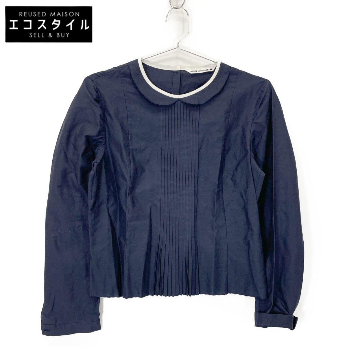 mina perhonen ミナペルホネン va 1877 ネイビー コットン クルーネック ブラウス 38