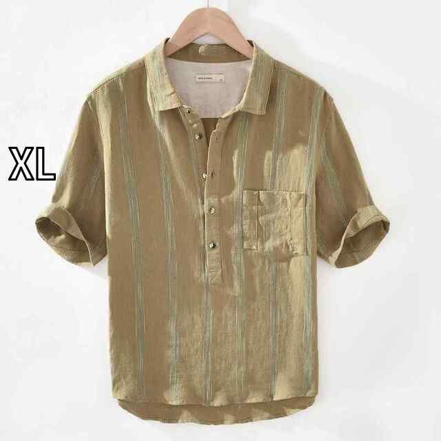 商品名:[XL]メンズ ファッション 服 オシャレ シンプル 大人 かっこいい 大きいサイズ ストリート 紳士服 リネン シャツ 半袖 夏 冷感 薄手 ラウンド カジュアル シャツ