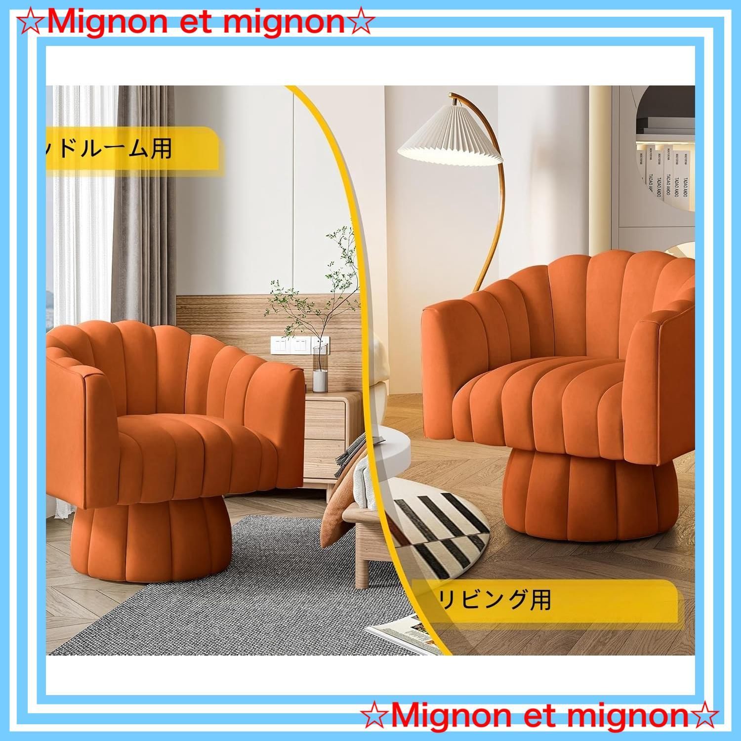 モダンなラウンジソファ 360度回転 ラウンドバレル 幅広の布張り ミッドセンチュリー ふわふわベルベットファブリック ホームソファ アクセントチェア リビングルーム ベッドルーム 待合室用 オレンジ