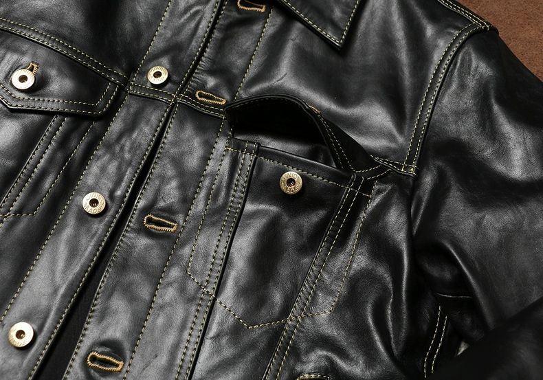 全新♥ ヴィンテージ507ワークボタン レザージャケット メンズ 翻し襟 ハードホースハイド 本革ライダース デニム風ショートジャケット K