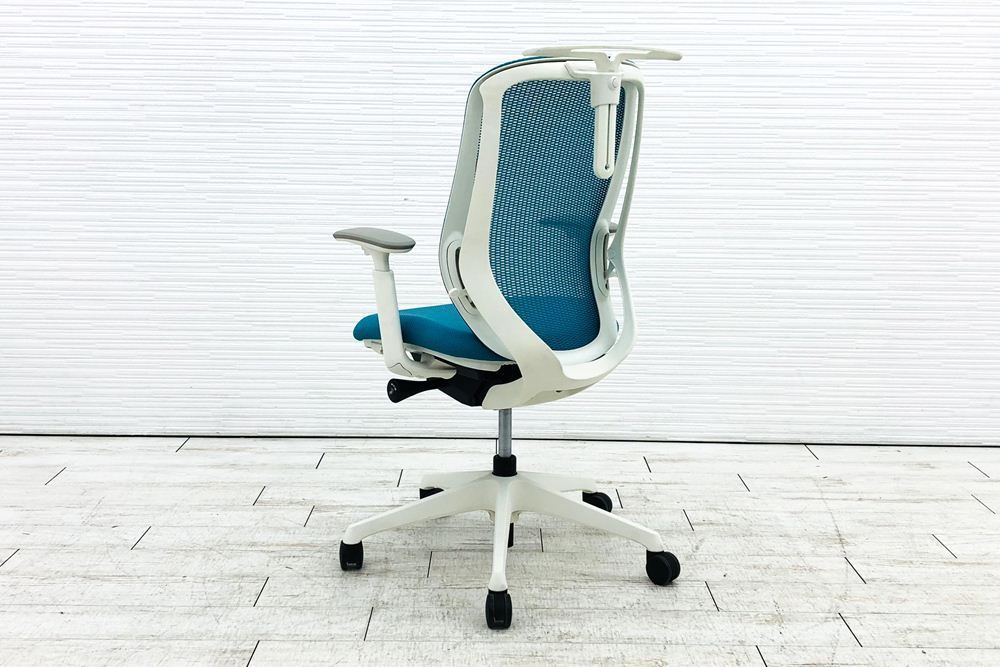 オカムラ シルフィーチェア 2016年製 ハイバック 可動肘 Sylphy クッション オフィス家具 ブルーグリーン