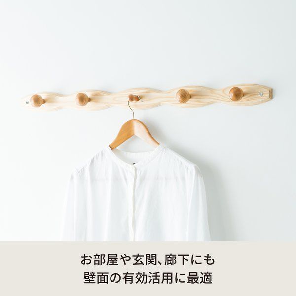 フックにも天然木を使用しており温かみのあるホッとする空間に。