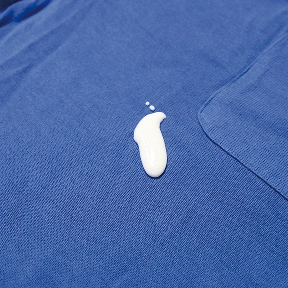 拭き取るだけで食べこぼしなどの液体・油汚れを簡単に落とすことができます。洗濯機やタンブラー乾燥にも強く、アイロンなどの熱で撥水機能は元に戻るので、何度洗濯しても効果は失われません。