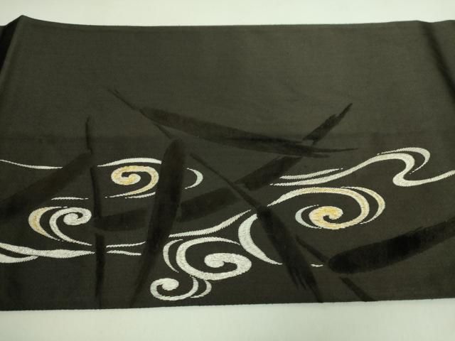 平和屋着物 上 アンティーク 大正ロマン 太鼓柄 京袋帯 手刺繍 白鷺 ベロア 憲法黒茶色地 kh 5