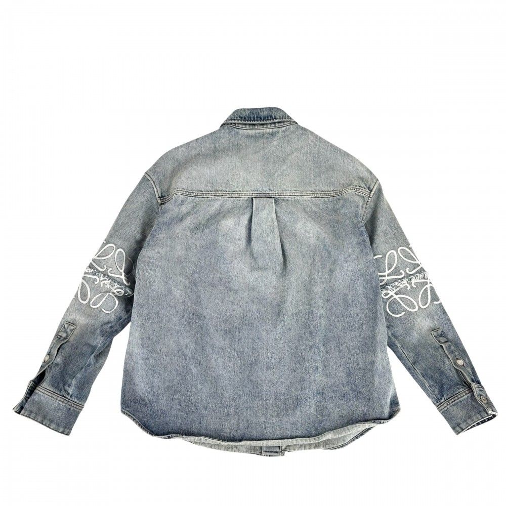 ロエベ デニムジャケット メンズ アナグラム オーバーサイズ Gジャン アウター アパレル 服 ウォッシュ加工 LOEWE 46 ブルー 青 シルバー金具 コットン 春 秋 品