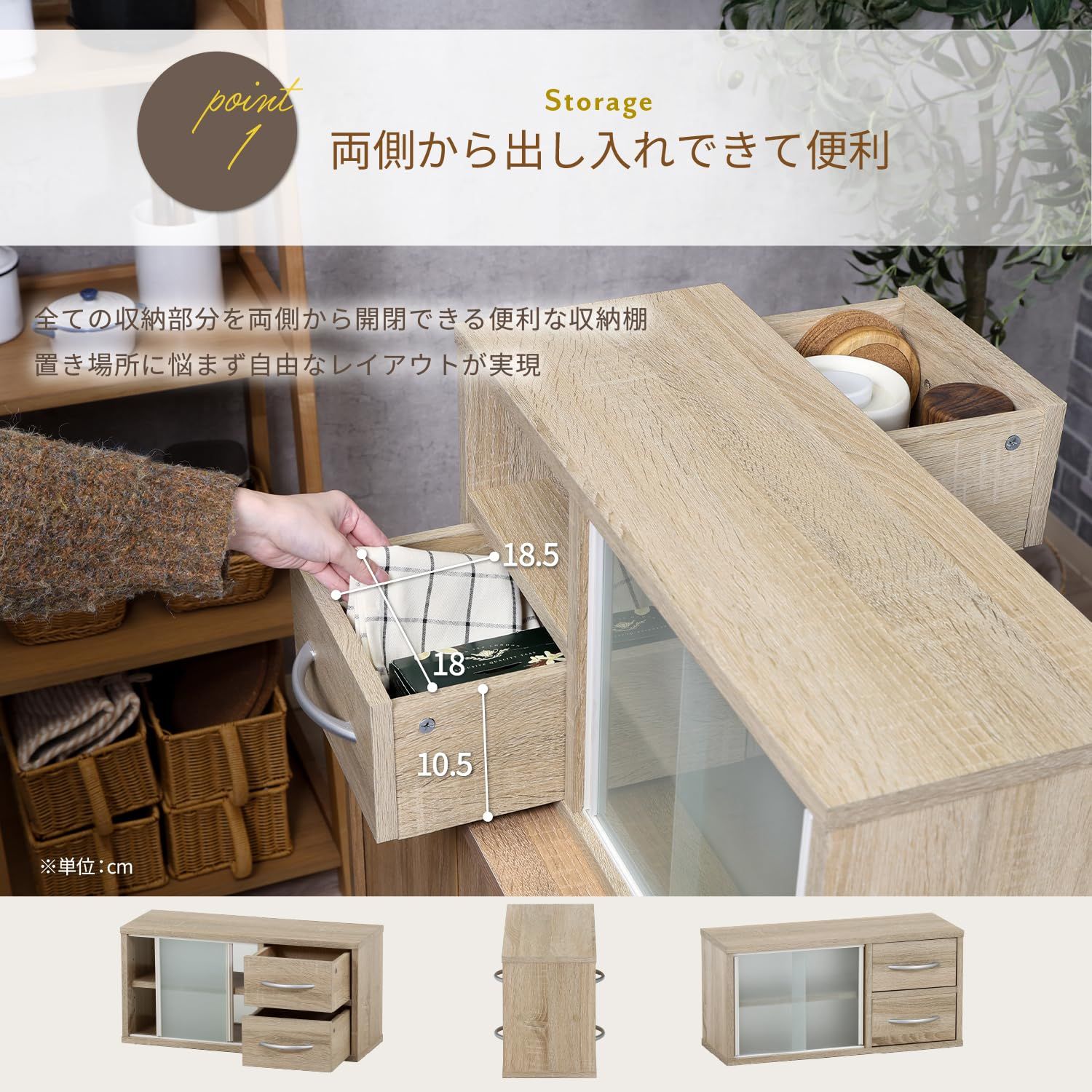 キッチンカウンターの上に置いて、食器やカトラリーをすっきり収納できます。