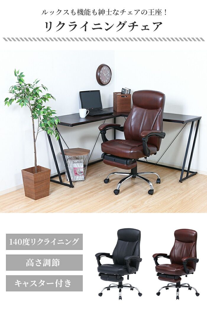 オフィスチェア リクライニング 140度 リクライニングチェア キャスター付き フットレスト付き 高さ調整 昇降式 クッション 椅子