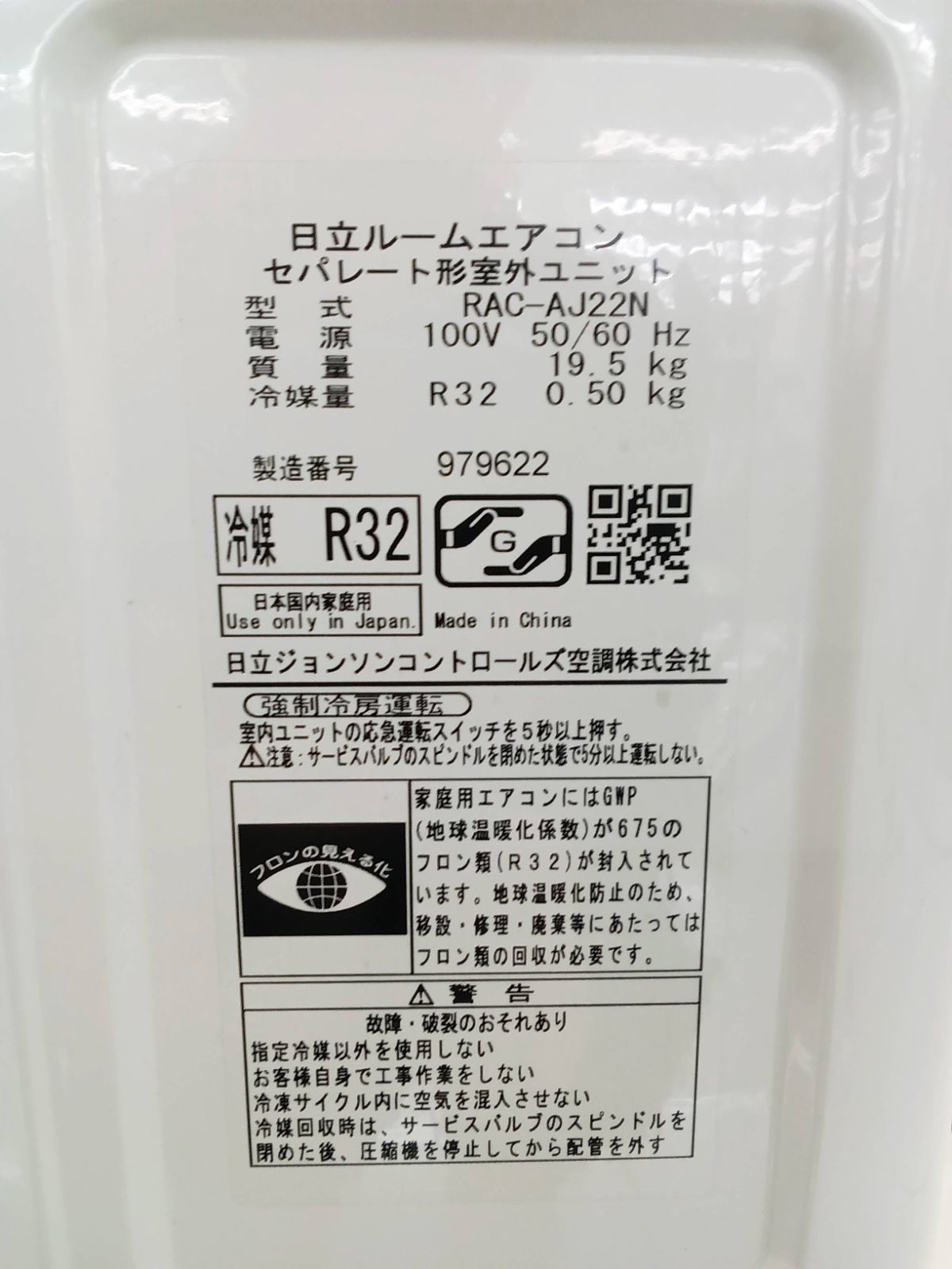 関東地域 販売 HITACHI ルームエアコン 製 2.2 kw室外機セット 取付工事無 H 470