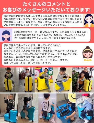 Homraku 子供用スーツケース乗れる キッズキャリーケース トランク ダイヤルロック式 ダブルキャスターで静音 安心素材 子供の遊び心に満足 旅行 遠足 帰省に便利 座れる木馬形 64.5 L大容量 最大積載重量35 kgまで 座布団付き ブルー マット仕