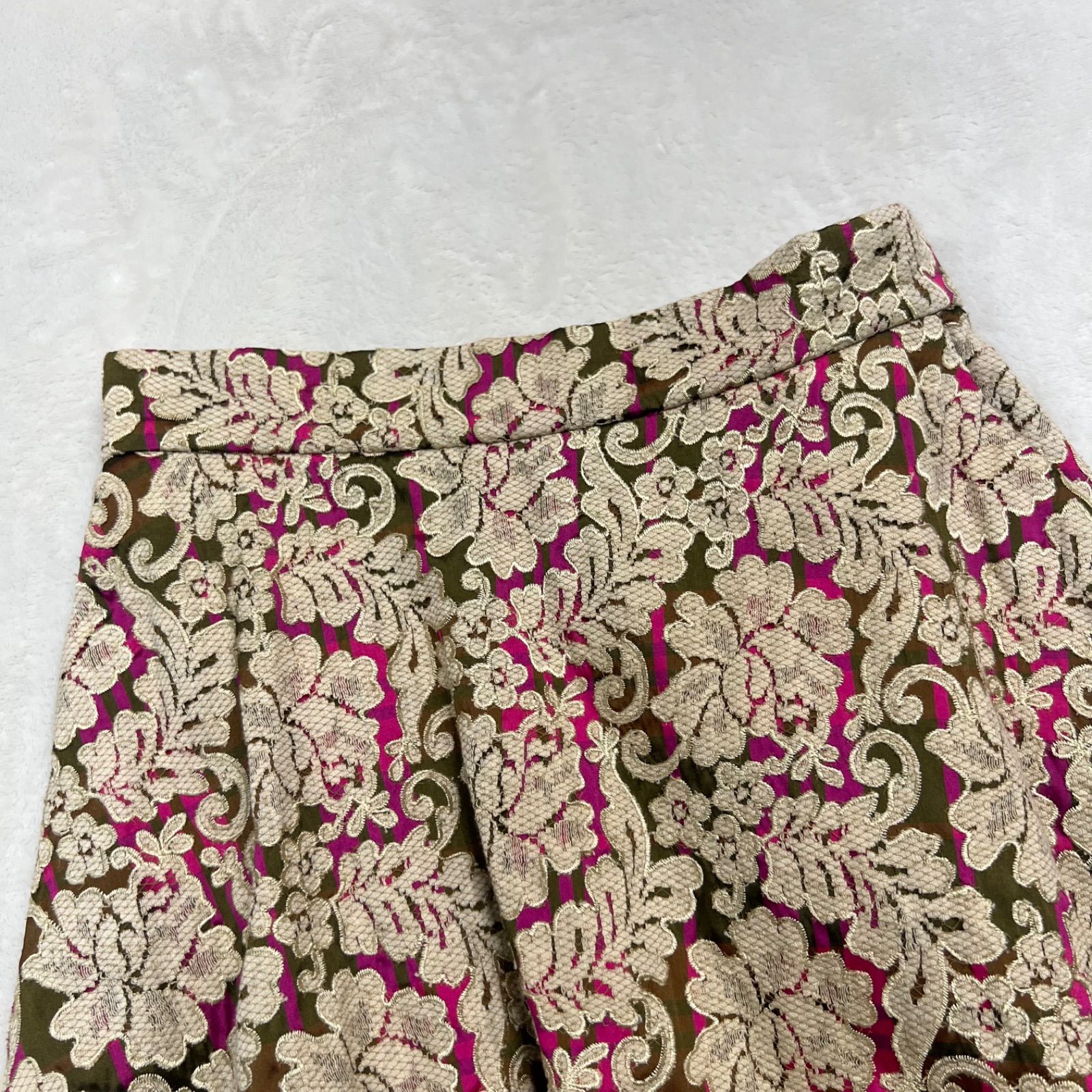 美品 Kaon カオン フレアスカート サイズ2 チェック柄+縫い付けレース