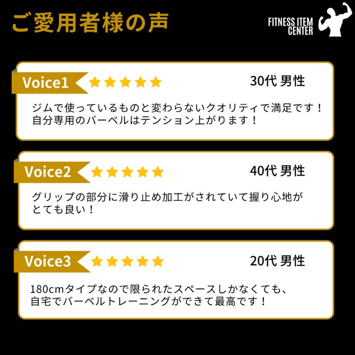 また、全長180cmタイプなので、ジムだけでなくスペースが限られた自宅でのトレーニングでも扱いやすいバーベルシャフトです。