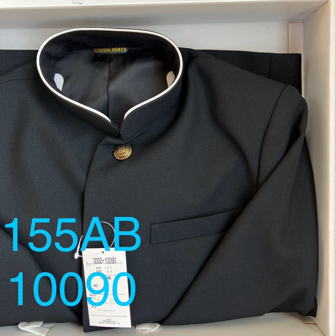 混紡 黒サージラウンド 学生服 上着のみ 学ラン 155 AB N10090 毛50% ポリエステル50% 中学 高校 詰襟 NIKKE Green Mate ホームウォッシャブル襟