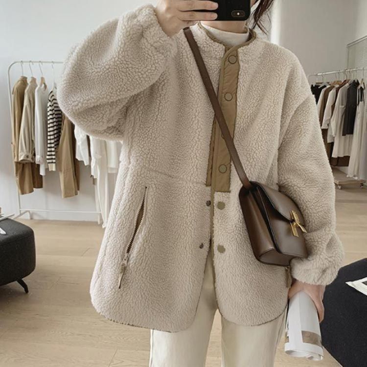 ボアジャケット レディース 秋冬 カジュアル アウター もこもこ 切り替え ムートンコート 前開き 長袖 ゆったり きれいめ 厚手 防寒 お洒落 swx 1483