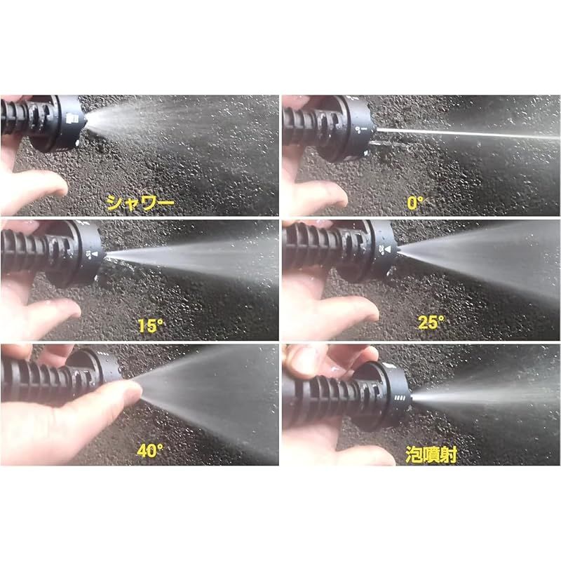 内容:5m高圧ホース、トリガーガン本体、バッテリー 充電器 ソープポット、6-IN-1多機能ノズル、角度ノズル、長尺ノズル 予備パッキン